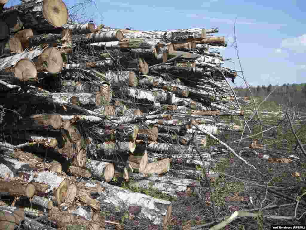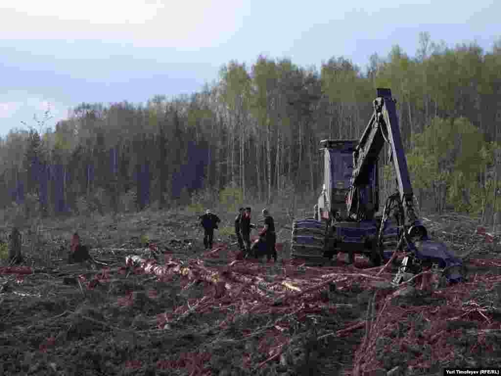 В Химкинском лесу продолжаются столкновения экологов с вырубщиками и охранниками компании застройщика. Ночью с 5 на 6 мая и утром 6 мая пострадали три противника вырубки леса. Москва, Россия. Русская служба РСЕ/РС.