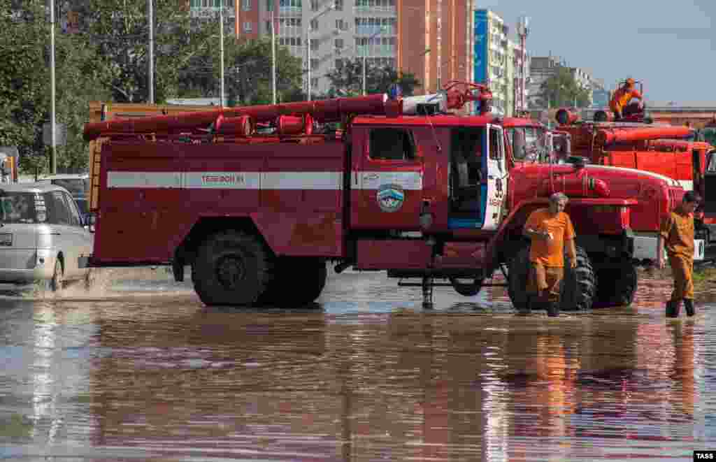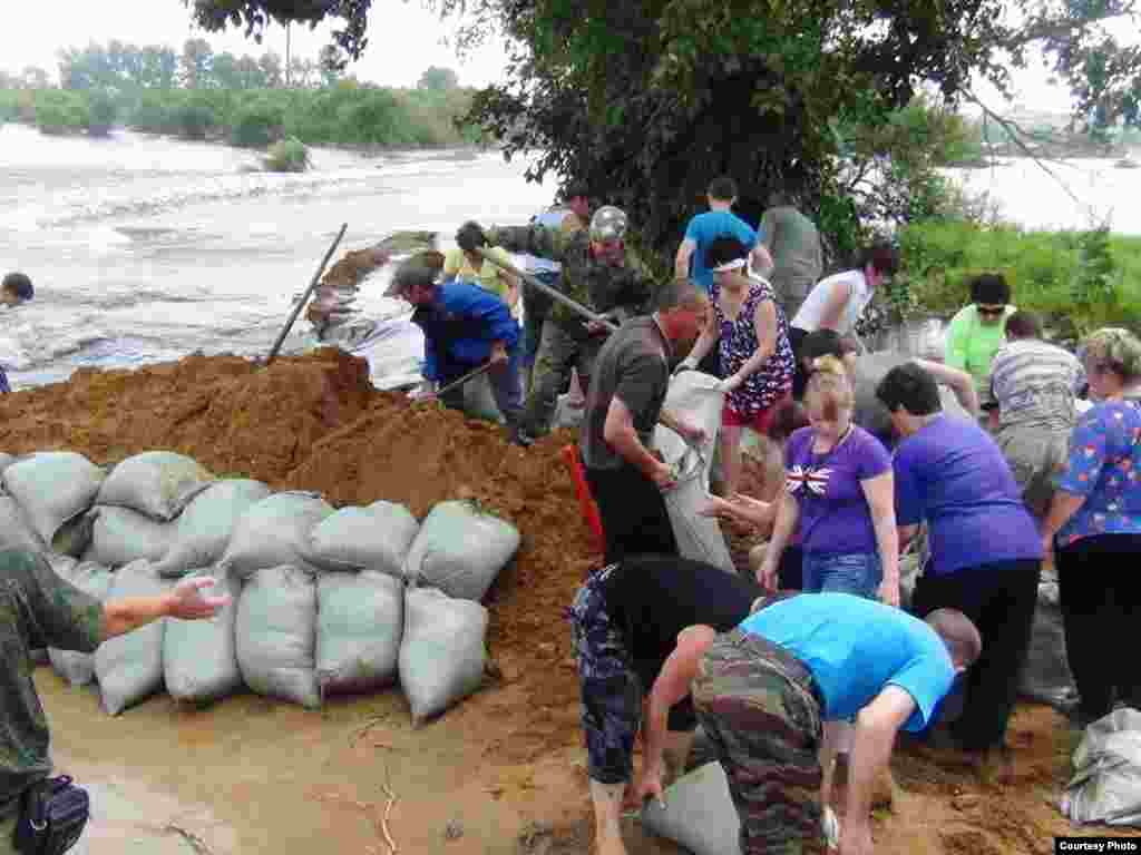 Как сообщает ИТАР-ТАСС, вода в Амуре в районе Хабаровска продолжает прибывать. Только за последние четыре часа вода поднялась еще на три сантиметра и достигла отметки в 759 см, сообщили в пресс-службе регионального управления МЧС по Хабаровскому краю. В районе Комсомольска-на-Амуре вода поднялась до восьми метров. Фотографии Русской службы РСЕ/РС.