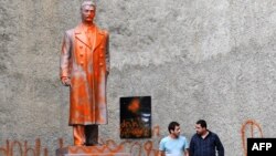 Памятник Иосифу Сталину в грузинском городе Телави не демонтирован, несмотря на решение властей. Пока только краску вытерли