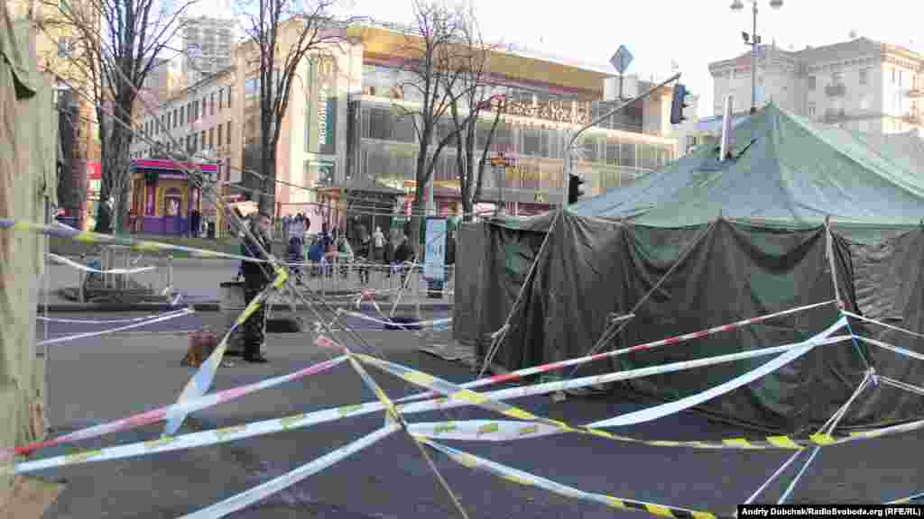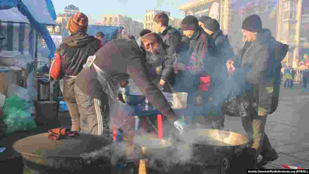 Несколько тысяч демонстрантов находятся сейчас на площади Независимости в центре Киева, где уже больше месяца продолжается акция сторонников евроинтеграции Украины. Фотографии Украинской службы РСЕ/РС