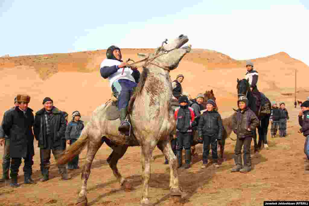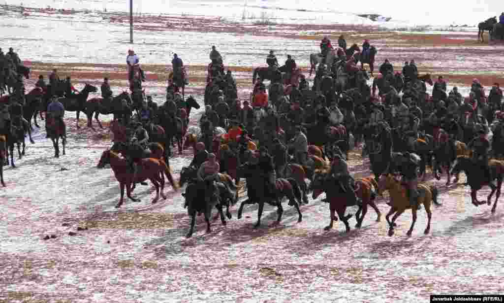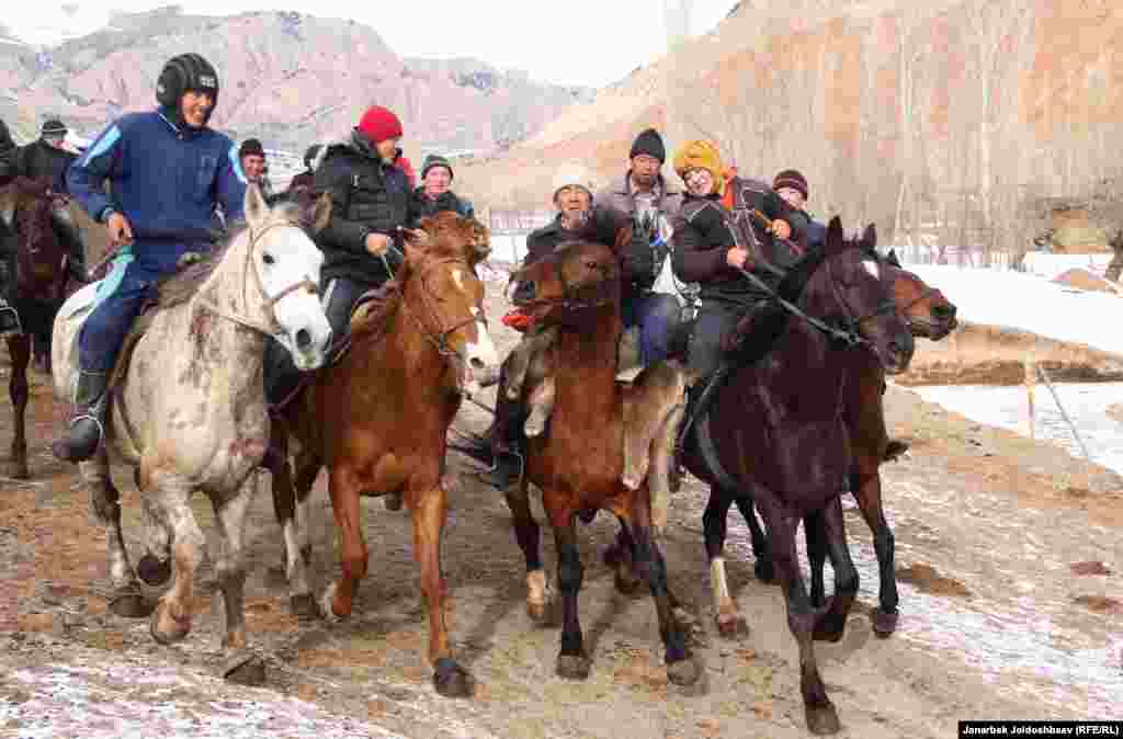 Жители алайского села Кабылан-Кол зимой традиционно устраивают скачки и козлодрание. Зимой у сельчан не так много работы, вот и забавляются местные мужчины конными играми.