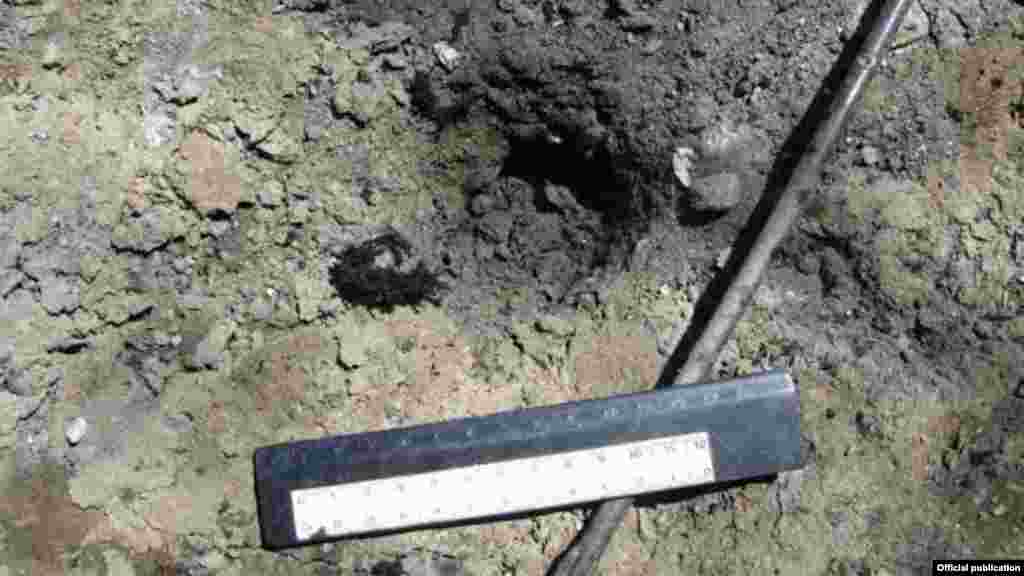 На участке Алтын-Жылга Даринского айыл окмоту Баткенской области обнаружен неразорвавшийся снаряд. Об этом сегодня «Азаттыку» сообщил начальник УВД области Улан Рысбеков. Напомним, 17 апреля в селе Зардалы Баткенской области дети, играя, подорвались на неизвестном взрывном устройстве. В результате погибли два мальчика - 5 и 8 лет, и четверо пострадали. Фотографии предоставлены УВД Баткенской области.