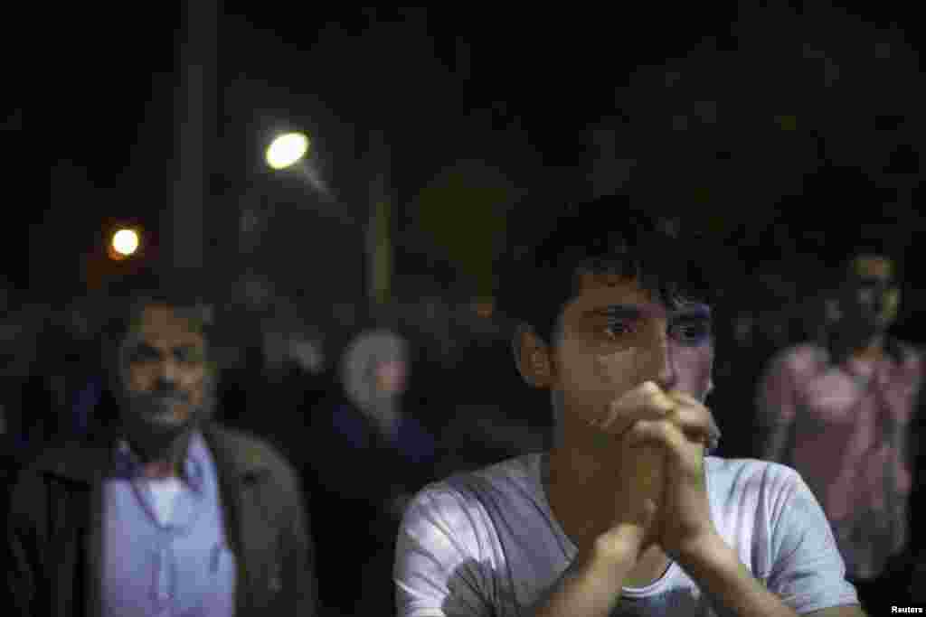 Местный житель встречает своего сына-шахтера, спасенного после взрыва в угольной шахте в Манисе. 13 мая 2014 года.