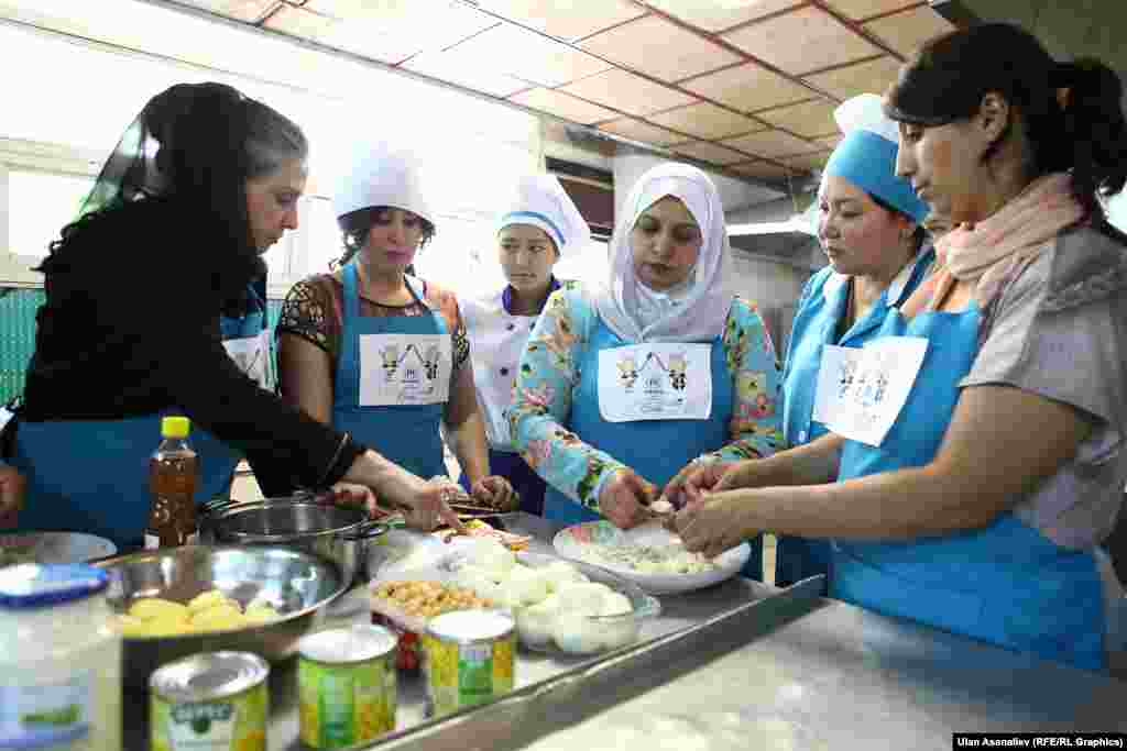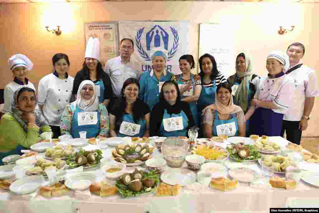 20 июня - Всемирный День беженцев, который отмечается во всем мире. Сегодня женщины-беженки в Кыргызстане приняли участие в кулинарном мастер классе в лицее №18 в Бишкеке. Цель мастер класса - культурный обмен в приготовлении национальных блюд кыргызской и афганской кухни. Участники приготовили оромо, куриный суп и афганский наргиз-кебап.