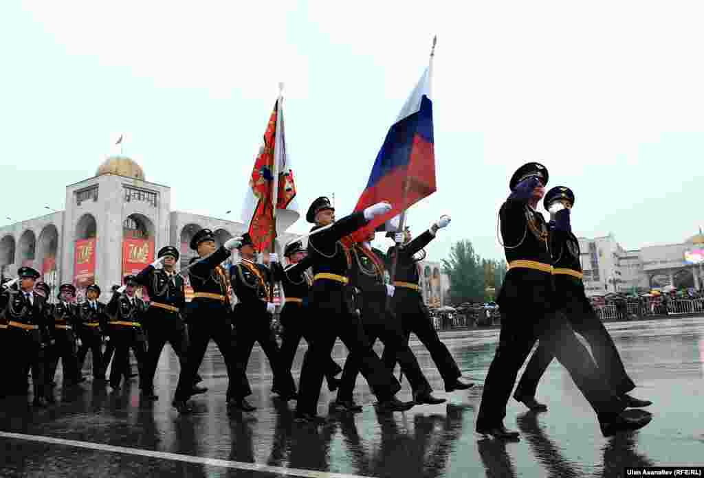 В Бишкеке состоялся военный парад в честь 70-летия Победы в Великой Отечественной войне. Парад принимал начальник Генерального штаба Вооруженных сил Кыргызстана Асанбек Алымкожоев. В торжественном мероприятии приняли участие премьер-министр Темир Сариев, торага Асылбек Жээнбеков, ветераны войны и труда, а также простые граждане.
