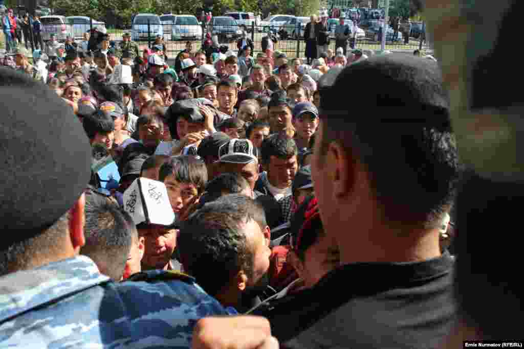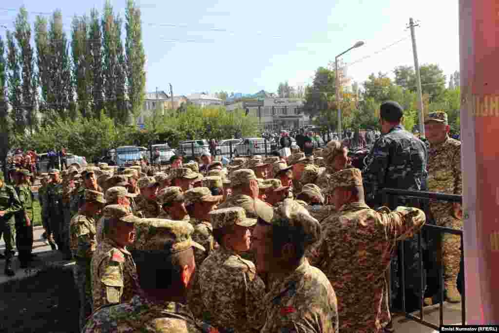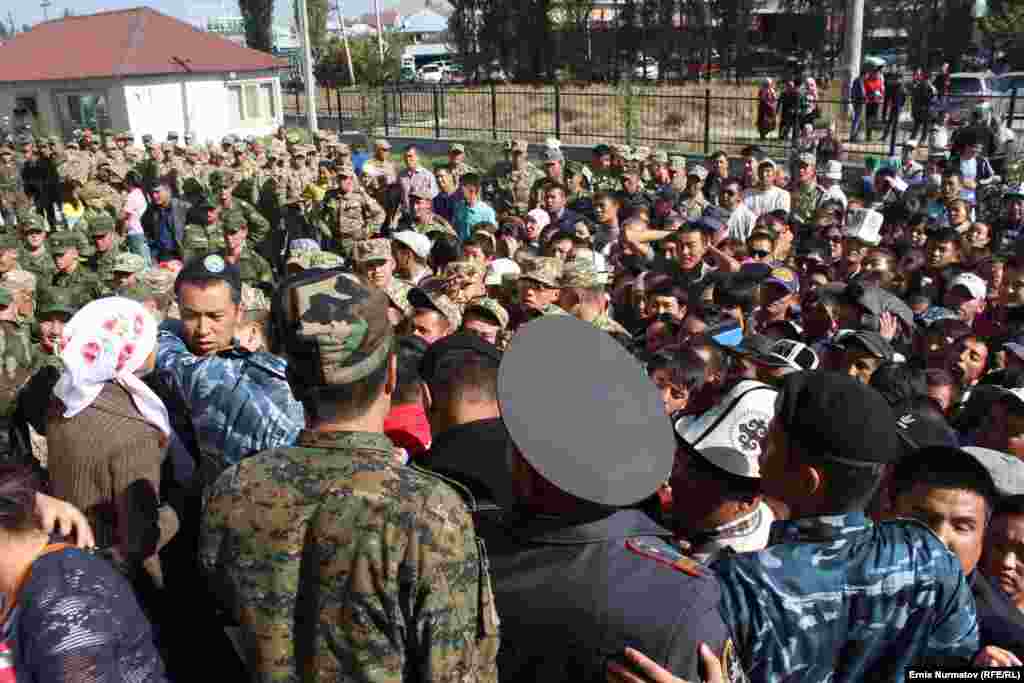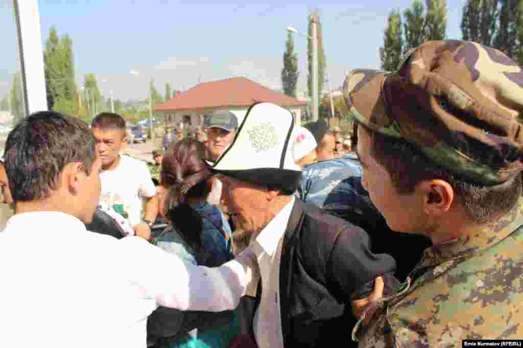 В Оше на дополнительном участке №5912 военнослужащие из-за большой очереди не смогли проголосовать. Военные начали голосовать вне очереди, однако ждущие в очереди местные жители выразили недовольство и прогнали ребят.