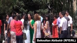Возле главного корпуса Кыргызского национального университета имени Ж. Баласагына проходит митинг. В нем принимают участие около 20 сотрудников вуза, которые возмущены итогами конкурсного отбора преподавателей.