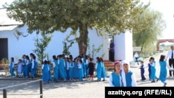 Возвращающиеся после уроков ученицы школы в селе Фирдоуси. Южно-Казахстанская область, 14 сентября 2017 года.