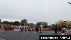 На центральной площади Оша люди начали собираться с самого утра. Несмотря на хоть и мелкий, но холодный дождь, горожане с неподдельным интересом наблюдали за выступлениями на площади. Женщина чуть за пятьдесят выделялась в толпе особым настроением, жизнерадостностью, видно было, что она получает наслаждение от каждого номера праздничной программы. Она представилась жительницей микрорайона «Туран» Караматхан Нишанбаевой.
