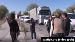 Корреспондент «Азаттыка» Элеонора Мамбетшакирова сообщила, что на кыргызской стороне от границы наблюдается скопление транспорта и граждан, желающих проехать в Казахстан.