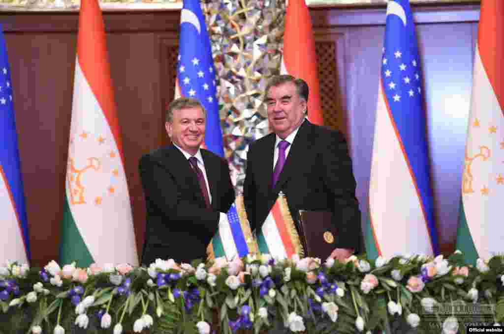 Некоторые наблюдатели уже окрестили визит Шавката Мирзияева в Таджикистан "историческим". Это первый визит в Душанбе Мирзияева со времени вступления в должность президента Узбекистана после смерти Ислама Каримова, в годы правления которого отношения между соседними государствами были напряженными.
