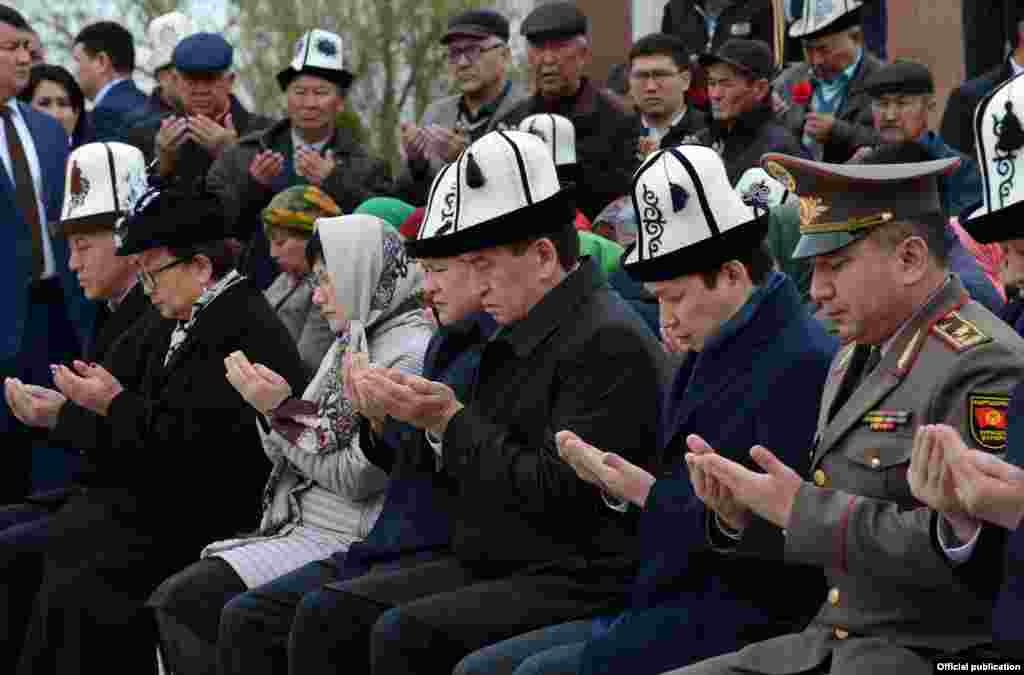 В мероприятии приняли участие президент Сооронбай Жээнбеков, экс-президент Роза Отунбаева, спикер Жогорку Кенеша Дастан Джумабеков, премьер-министр Сапар Исаков, родственники погибших и пострадавших 7 апреля 2010 года, участники апрельских событий, депутаты Жогорку Кенеша, члены правительства, руководители других государственных органов и представители общественности.