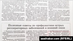 Информационный центр министерства опубликовал в номере государственной газеты «Нейтральный Туркменистан» заметку с 11 «полезными советами» по профилактике респираторных заболеваний в осенний период, сообщает Радио Азатлык (Туркменская редакция Радио Свобода).