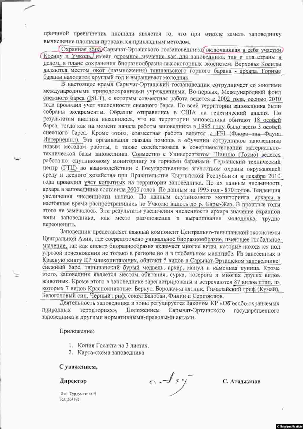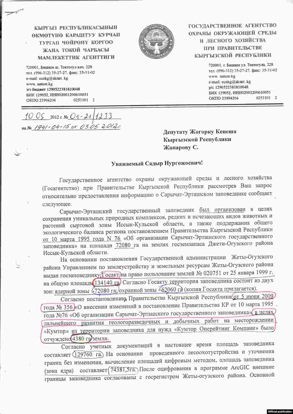 Письмо ГАООСЛХ Садыру Жапарову