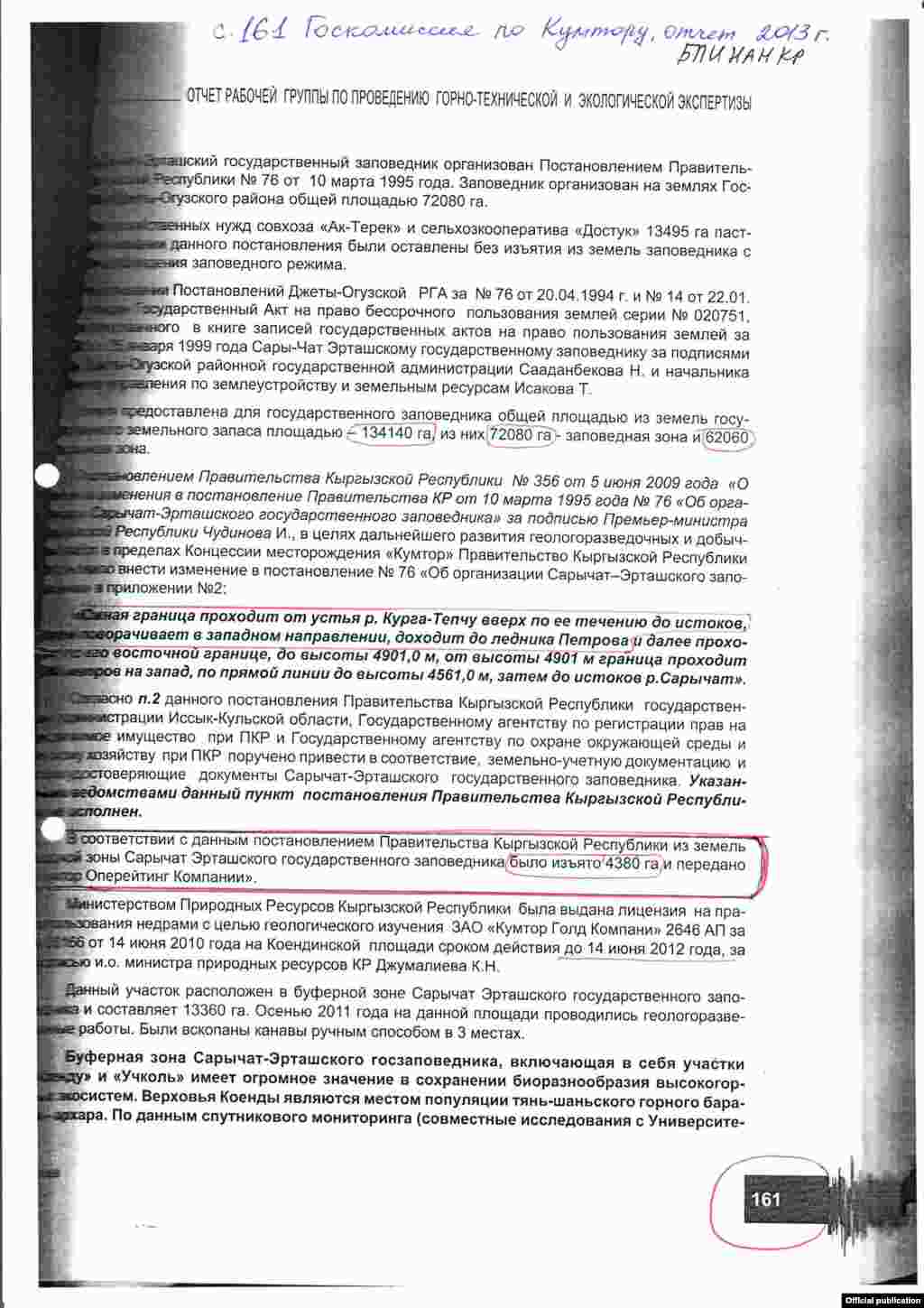 Отчет госкомиссии по Кумтору