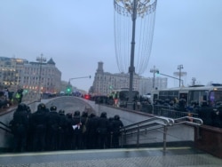 Тротуар у здания "Известий" перекрыт, вход в метро заблокирован. Сюда ушла часть протестующих, оттесненных с Пушкинской площади, многие были задержаны