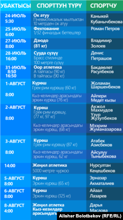 Расписание выступлений кыргызских спортсменов на Олимпиаде-2020 (на кыргызском языке).