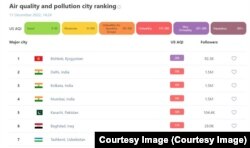 11 декабря Бишкек снова расположился на первом месте списка городов мира с самым загрязненным воздухом по версии интернет-сервиса AirQuality.