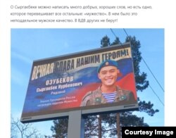 А в центре города Южно-Сахалинск стоит билборд с фотографией молодого человека в военной форме. Это - уроженец Кыргызстана Сыргакбек Озубеков, выпускник Сахалинского государственного университета. Сразу после окончания школы в России его призвали в армию. Когда Россия начала войну против Украины, воинское подразделение, в котором он служил, было отправлено на фронт. В мае он погиб в бою под городом Власов.