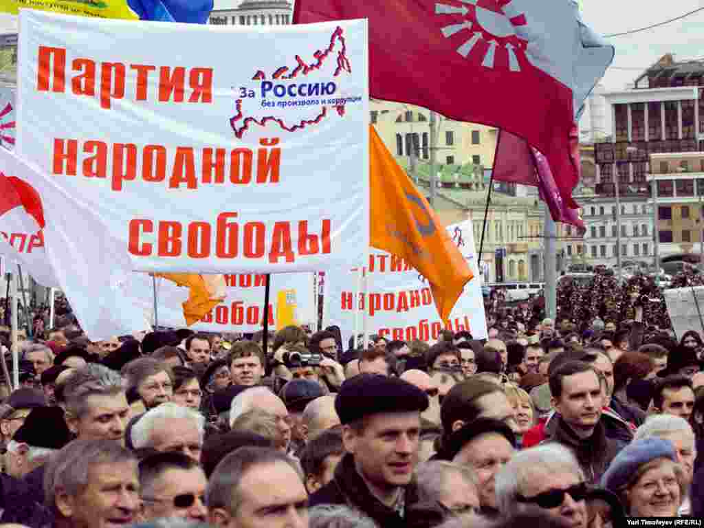 В Москве 16 апреля 2011 прошел санкционированный властями митинг Партии народной свободы против произвола и коррупции. Радио "Свобода" (Русская служба РСЕ/РС). 16.4.2011.