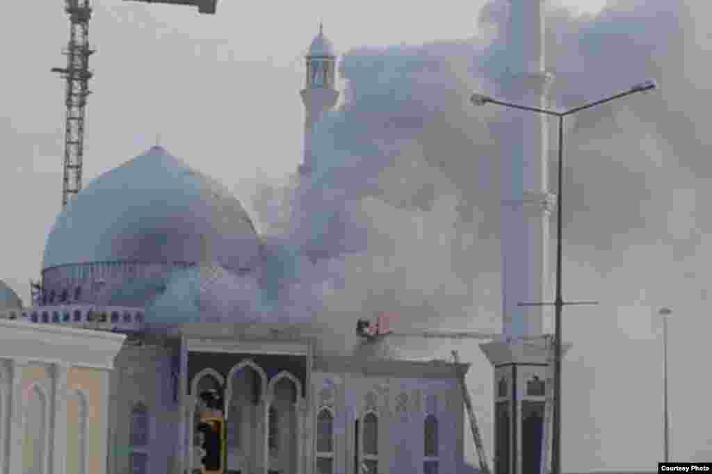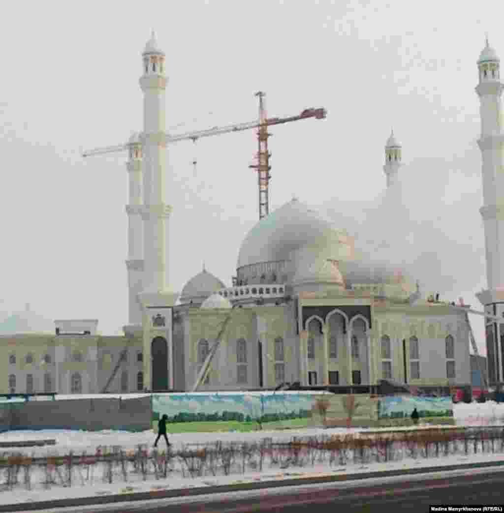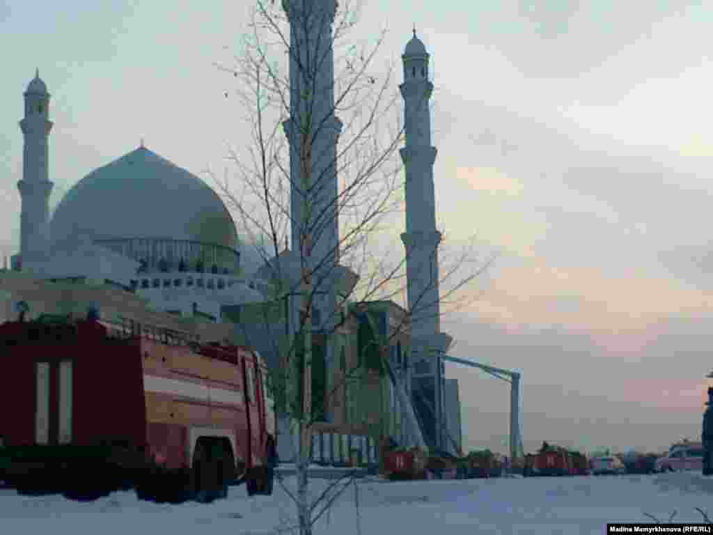 В Астане 15-го января горела новая мечеть «Хазрет Султан». По официальным данным погиб один человек. Предварительная причина пожара - искра от сварочных работ. Фотографии Мадины Мамырхановой. Казахская служба РС\РСЕ