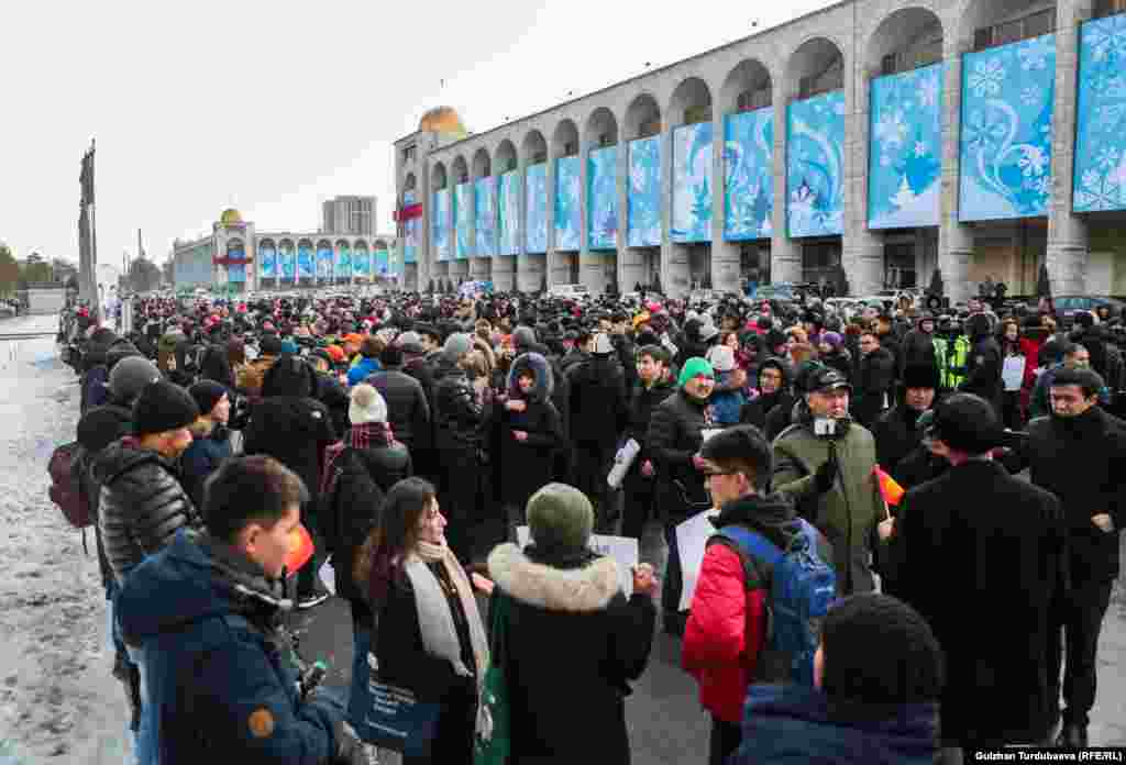 На площади «Ала-Тоо» в Бишкеке прошла мирная акция с требованием к властям принять меры в борьбе с коррупцией и остановить давление на СМИ.