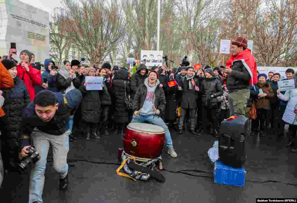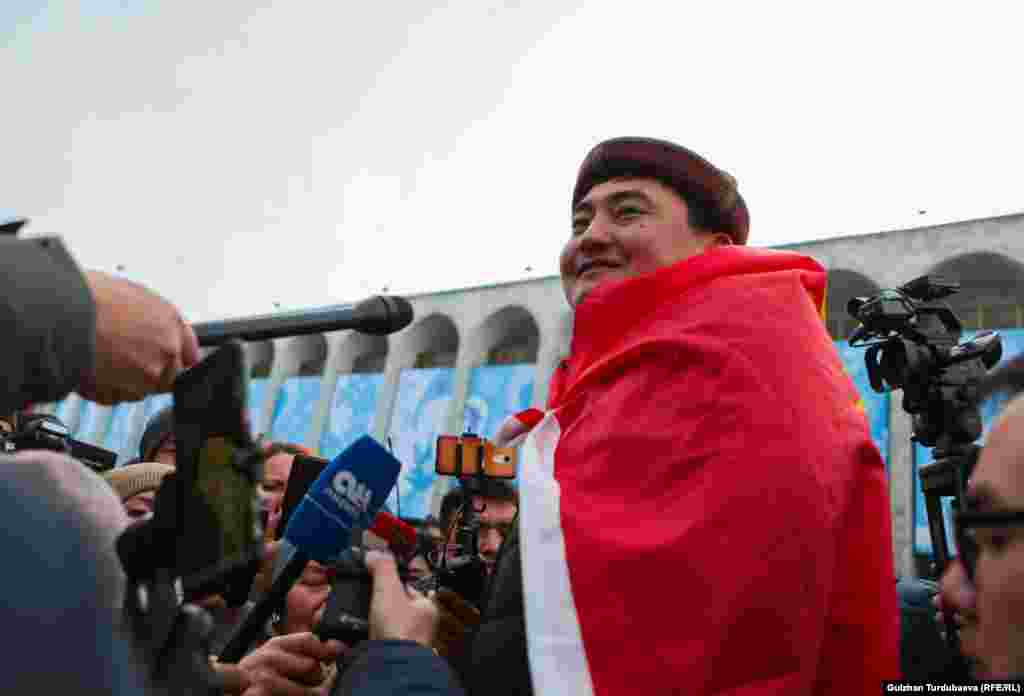 Как оказалось, на акцию пришли представители движения «Кыргыз чоролору». В интервью журналистам лидер «Кыргыз чоролору» Замирбек Кочорбаев заявил, что поддерживает требования участников мирной акции – борьбу с коррупцией и свободу слова.
