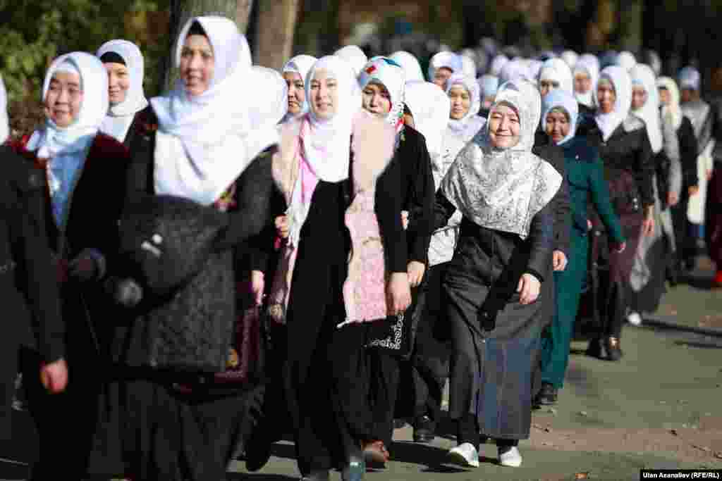 Женское крыло Духовного управления мусульман Кыргызстана и общественная организация кыргызстанских мусульманок «Мутакалим» организовали 5 ноября в Бишкеке пеший ход и велопробег от отеля «Ак-Кеме» до Республиканского центра крови в поддержку здоровья женщин Кыргызстана. Участницы акции сдали кровь в Республиканском центре крови в знак поддержки тысячи кыргызстанских женщин, страдающих малокровием. Это первая массовая публичная акция кыргызстанских мусульманок за годы независимости. "Азаттык", Кыргызская служба РСЕ/РС