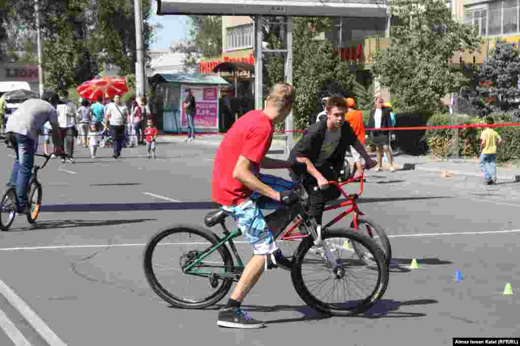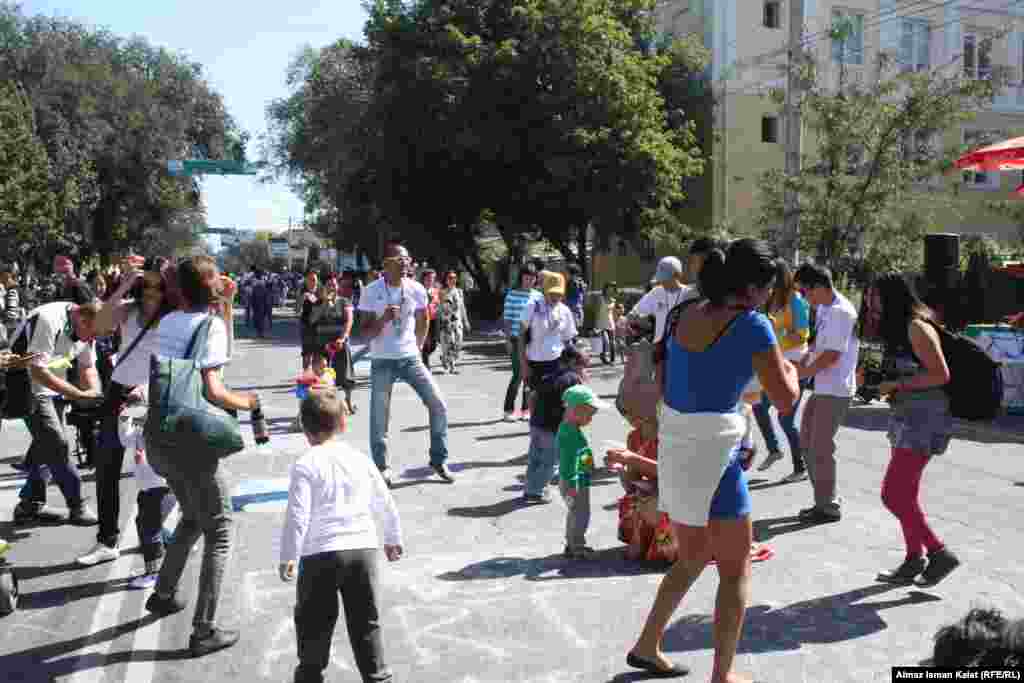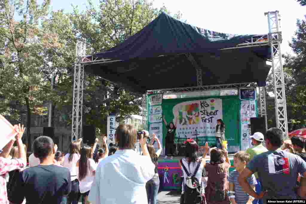 Впервые в самом центре кыргызской столицы 16 сентября прошел уличный фестиваль «KG Street Fest Пешеходный Рай». Улица Киевская от памятника героям Баткенской событий до улицы Исанова была разбита на 5 кварталов художников, танцоров, роллеров, юных инспекторов ПДДД и музыкантов. Фестиваль проводился мэрией города Бишкек совместно с Японским агентством международного сотрудничества (JICA) в рамках проекта «Исследование по совершенствованию городского транспорта в Бишкеке». Фото Алмас Ысман, "Азаттык", Кыргызская служба РСЕ\РС