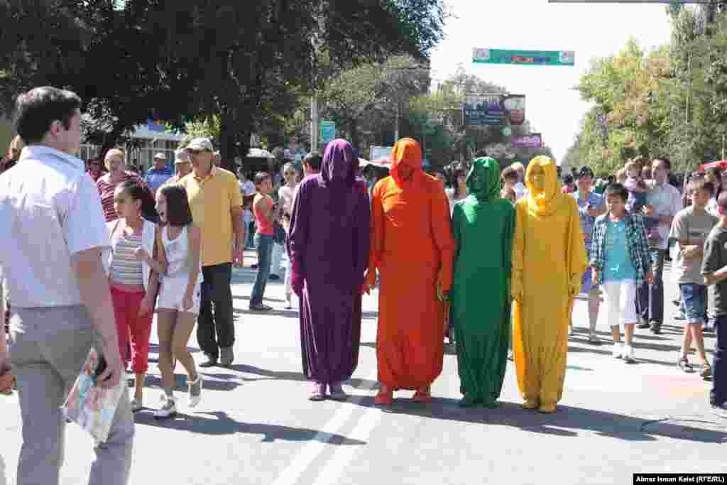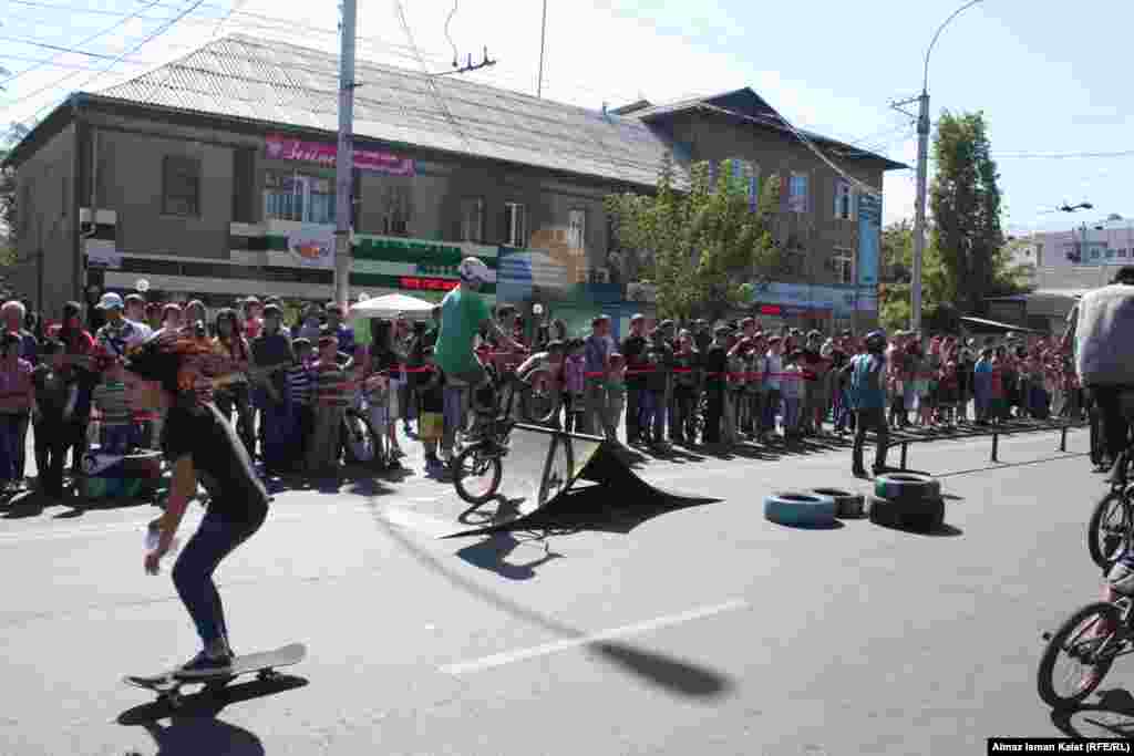 Впервые в самом центре кыргызской столицы 16 сентября прошел уличный фестиваль «KG Street Fest Пешеходный Рай». Улица Киевская от памятника героям Баткенской событий до улицы Исанова была разбита на 5 кварталов художников, танцоров, роллеров, юных инспекторов ПДДД и музыкантов. Фестиваль проводился мэрией города Бишкек совместно с Японским агентством международного сотрудничества (JICA) в рамках проекта «Исследование по совершенствованию городского транспорта в Бишкеке». Фото Алмас Ысман, "Азаттык", Кыргызская служба РСЕ\РС
