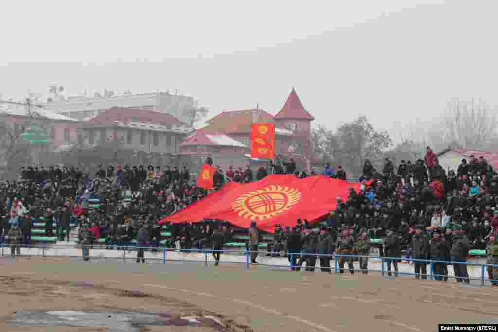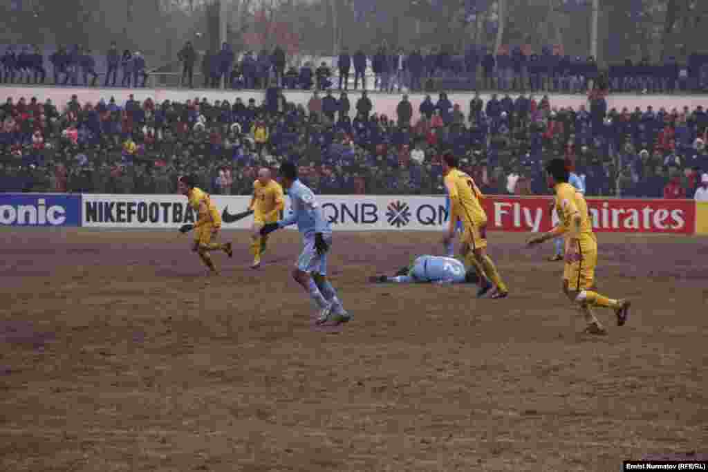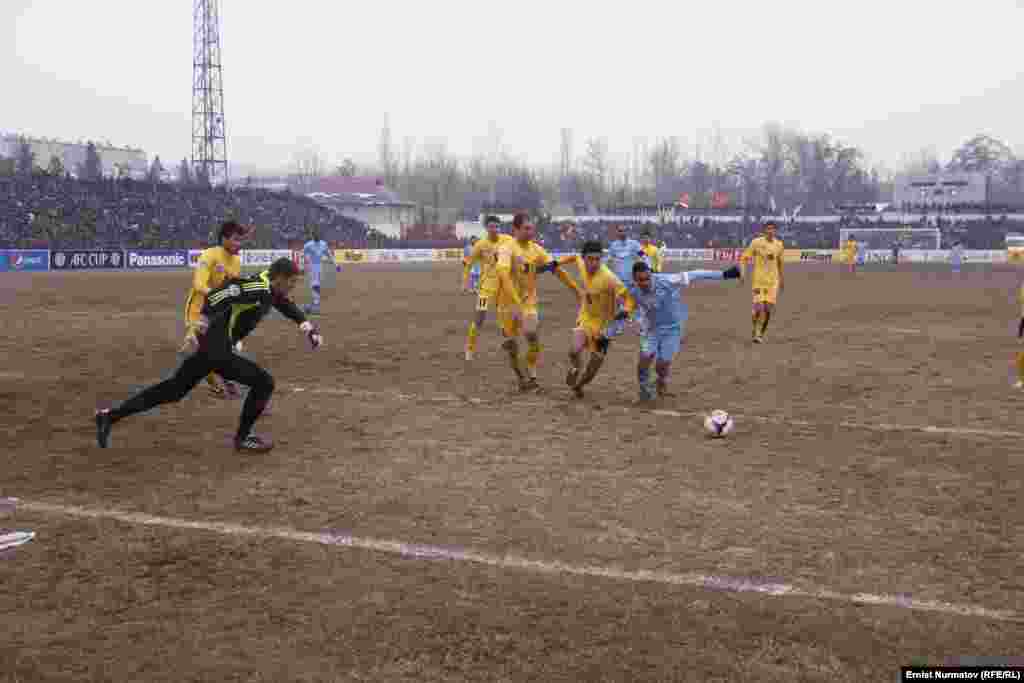Футбольный матч на Кубок Азиатской конфедерации футбола между командами «Алай» (Кыргызстан) и «Аль-Риффа» (Бахрейн) закончился ничьей. По разным оценкам, на стадионе города Оша 26 февраля собралось около 15 тысяч болельщиков. АФК по итогам встречи лучшим игроком этого матча признала нападающего «Алая» Алмаза Мирзалиева. Напомним, ошская команда является чемпионом Кыргызстана 2013 года.