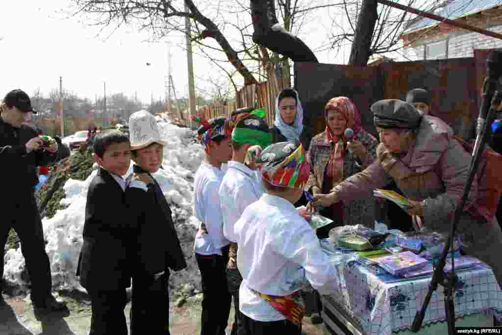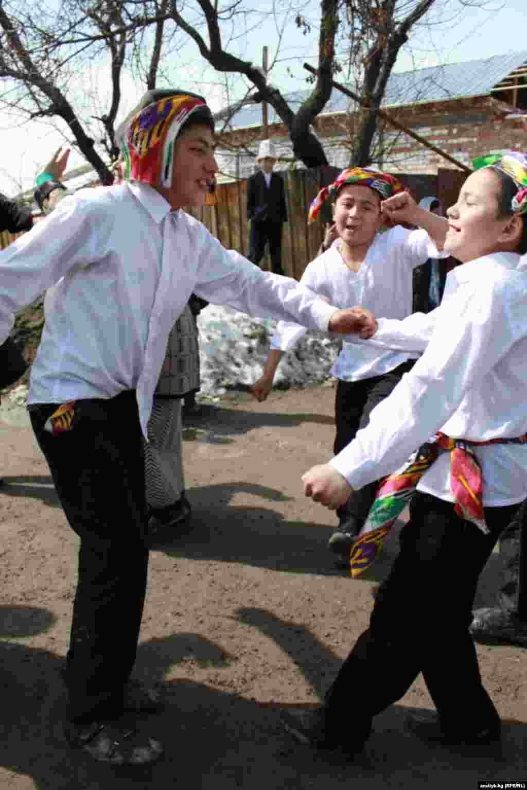 Жители микрорайона Черемушки, который больше всех пострадал во время трагических событий 2010 года, с песнями и танцами встретили праздник Нооруз. Фотографии предоставлены Сахирой Назаровой, правозащитная организация "Эдвокаси центр по правам человека", Ош, 22-23 марта 2012.