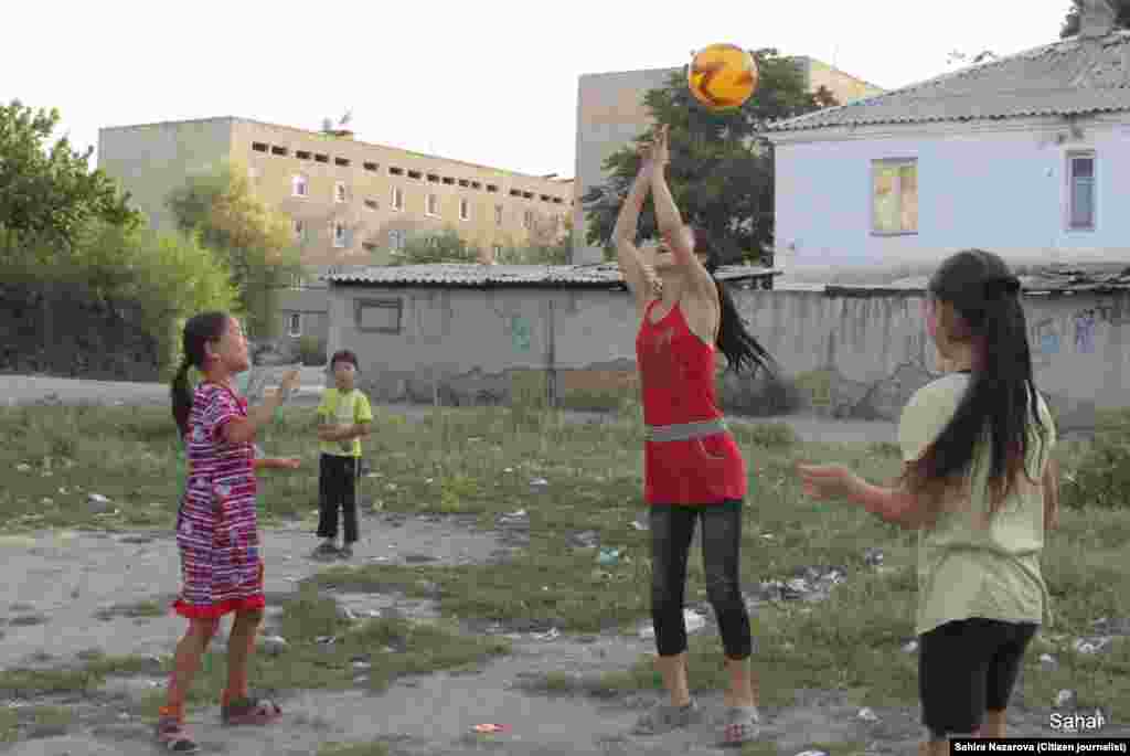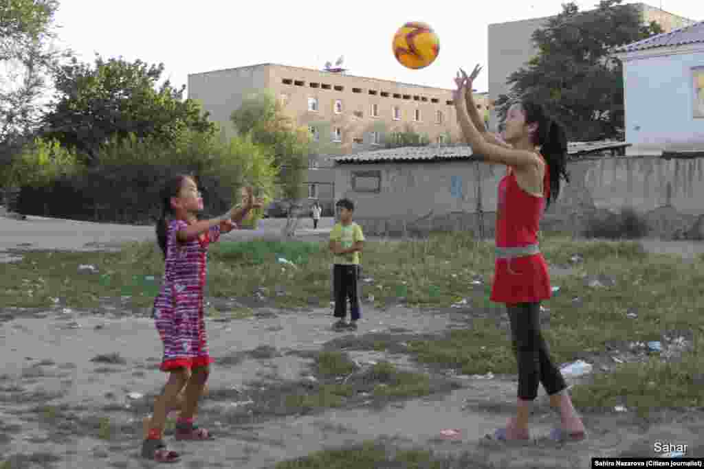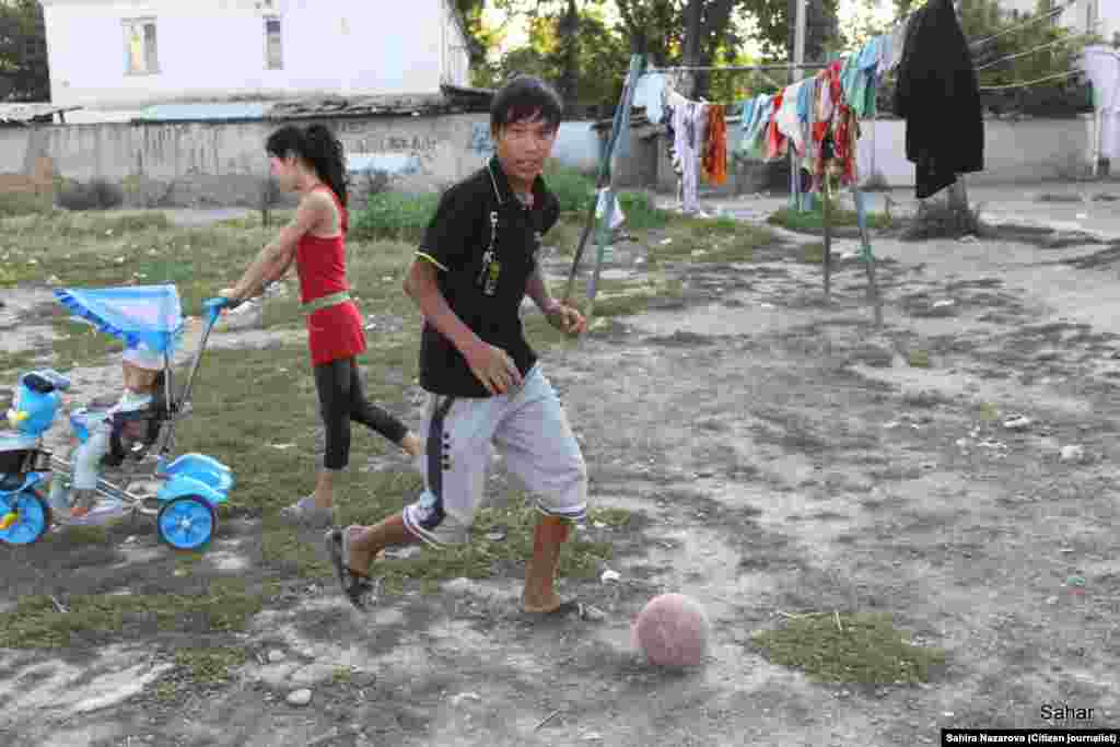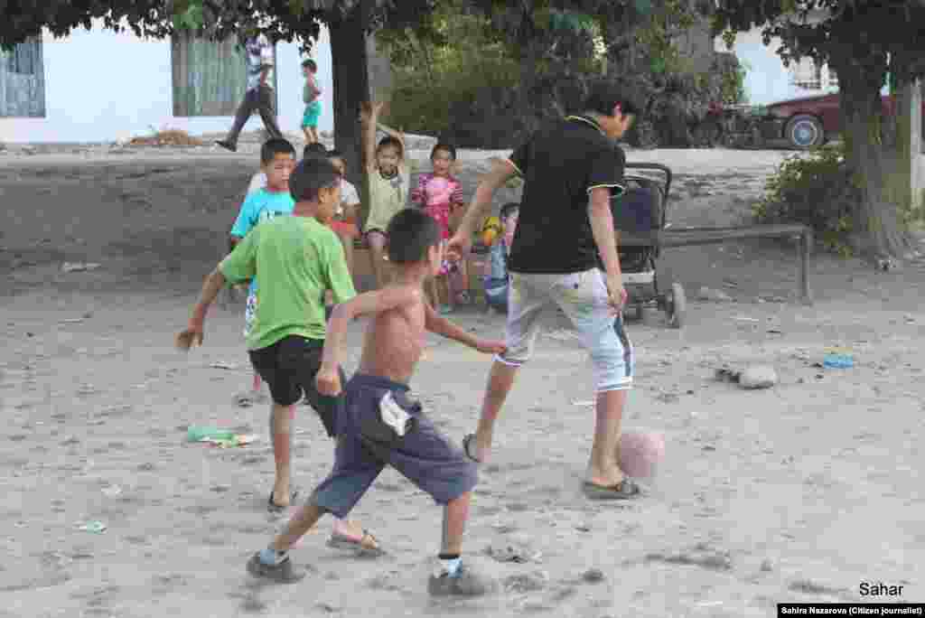 В Оше есть несколько платных футбольных полей для взрослых — час игры 500 сомов. При этом там нет душевых, раздевалок. Только поле, ворота и мяч. Детям по улице Заводской (возле старого кирпичного завода) не нужны такие поля. Они гоняют мяч возле домов, умудряясь не попасть в оконные стекла. На импровизированной детской площадке ни одной карусели, пара молодых осин, остатки не вытоптанной травы и бытовой мусор. Фотографии и текст блогера Сахиры Назаровой (Ош). "Азаттык", Кыргызская служба РСЕ/РС