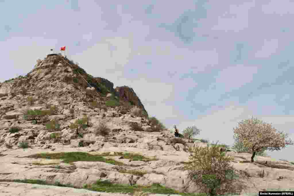 Вдали краснеет флаг на крыше домика Бабура - основателя империи моголов в Индии