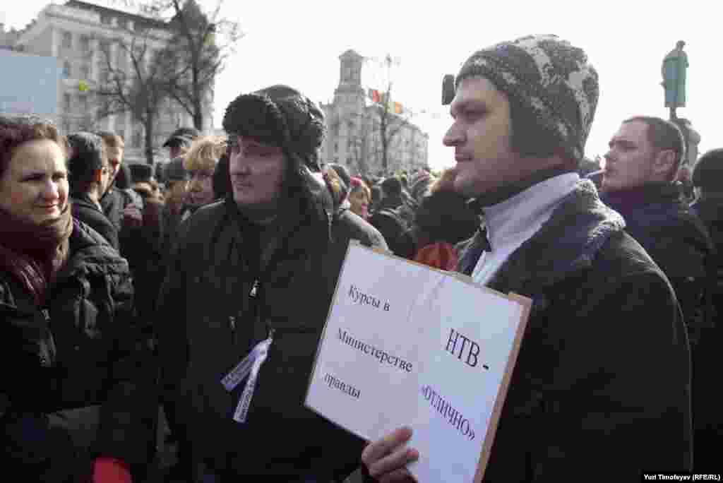 На Пушкинской площади в Москве 17 марта прошло мероприятие под лозунгами "Свободу политзаключенным" и "Долой НТВ!" Русская служба РСЕ\РС