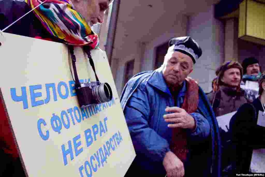 Московские журналисты и фотографы провели у посольства Узбекистана "плов-пикет" в защиту прав фотожурналистов. Русская служба РСЕ\РС