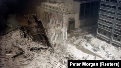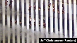 Люди призывали на помощь из горящей Северной башни Всемирного торгового центра. Всего там погибло 1366 человек, находившихся на верхних этажах Северной башни ВТЦ. Большинство погибли в момент столкновения самолета с башней, остальные – из-за пожара и обрушения здания
