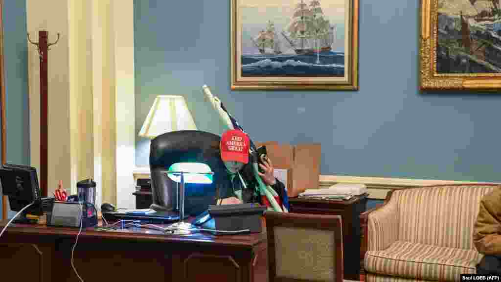 Один из сторонников Трампа в кабинете спикера палаты представителей США Нэнси Пелоси.