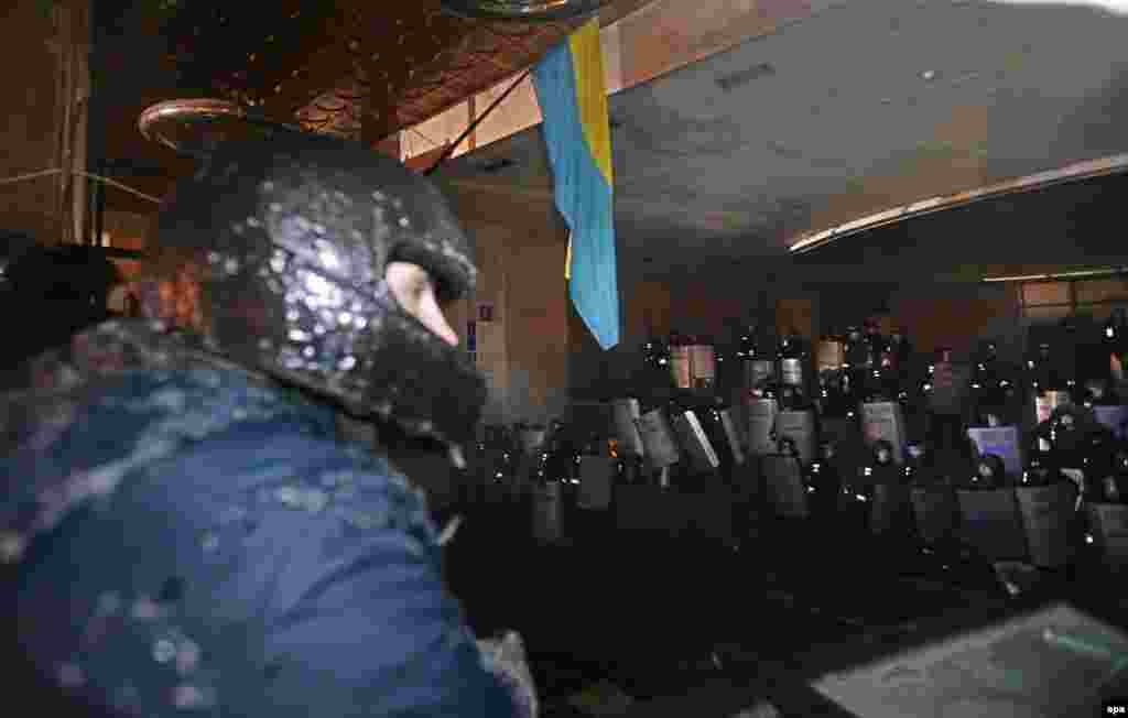 Рано утром 26 января протестующие в Киеве заняли Украинский дом. Демонстранты дали возможность нескольким сотням сотрудников милиции покинуть здание. Русская служба РСЕ/РС