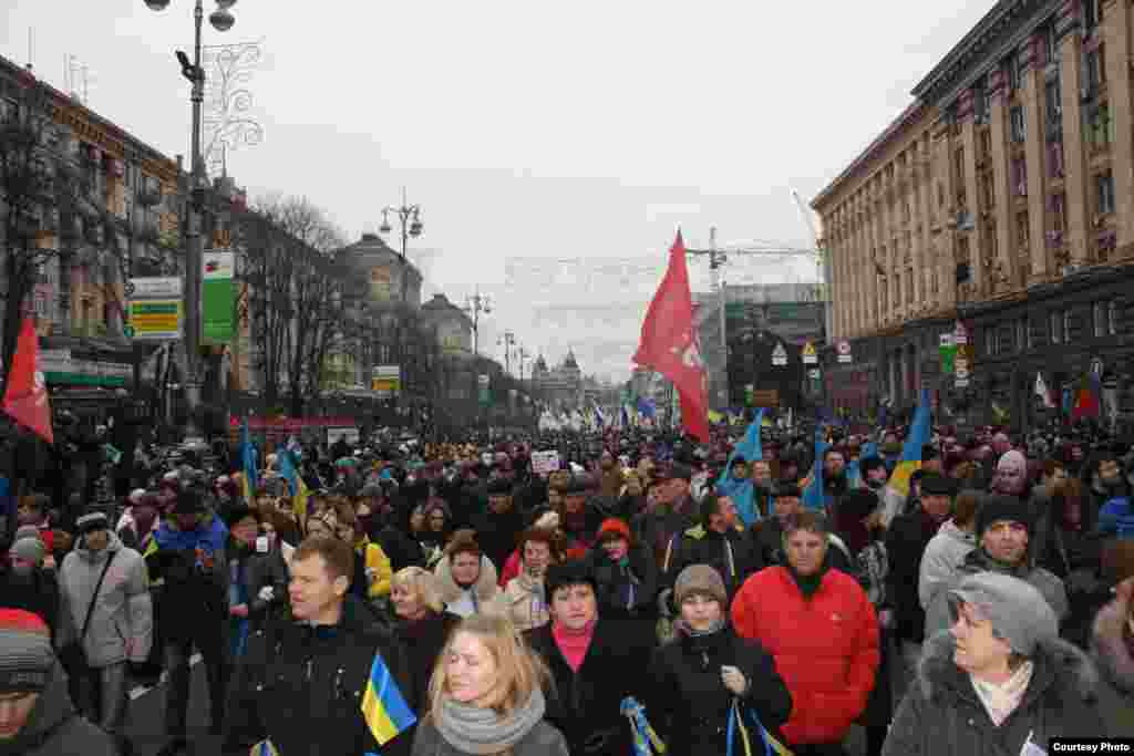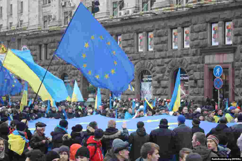 Сторонники европейской интеграции страны собрались в Киеве с протестом против решения президента Януковича не подписывать пакет соглашений с ЕС. Русская служба РСЕ/РС