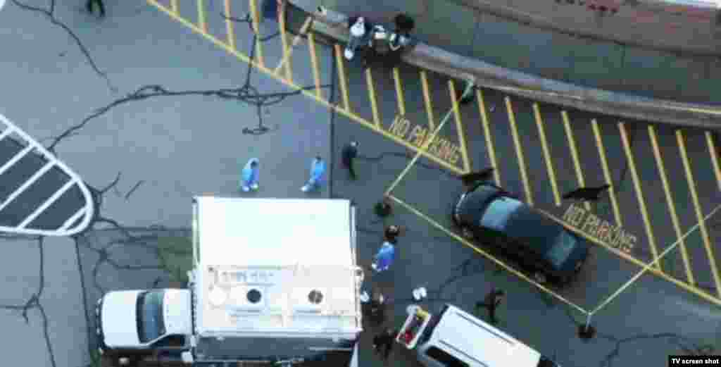 Жители города Ньютаун несут цветы к месту трагедии